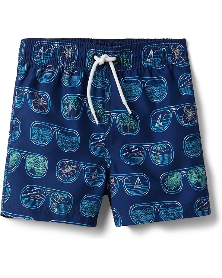 - Enjoy your swimming sessions to the maximum by wearing Janie and Jack® Boys Sunglasses Print Swim Short, that come with UV protection factor for ultimate protection from the sun. The shorts feature a standard fitted silhouette, elasticated waistband with drawstring closure, and allover graphic print.