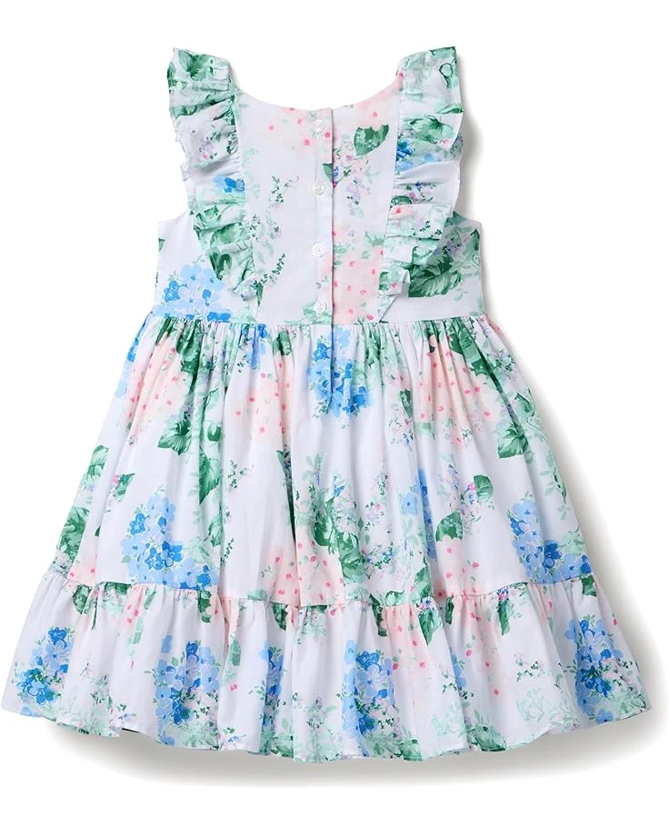 - Look pretty as a flower donning the allover floral printed Janie and Jack® Floral Spring Dress. The sleeveless dress features a crew neck, frill detailing on the front & back, a half back-button closure, slight smocked detail at the center-front, and a tiered skirt.