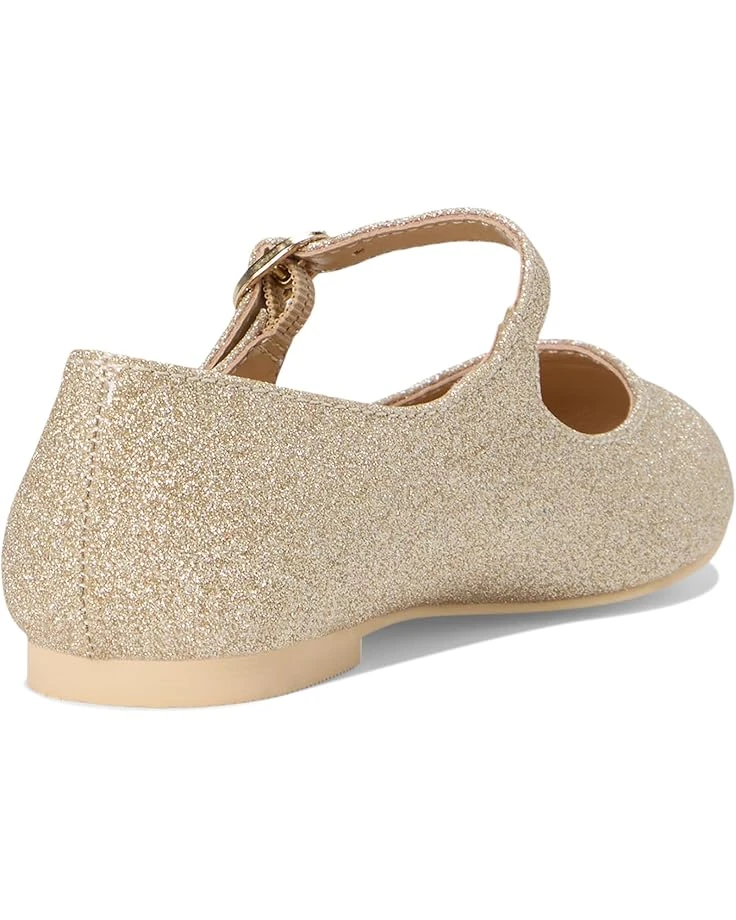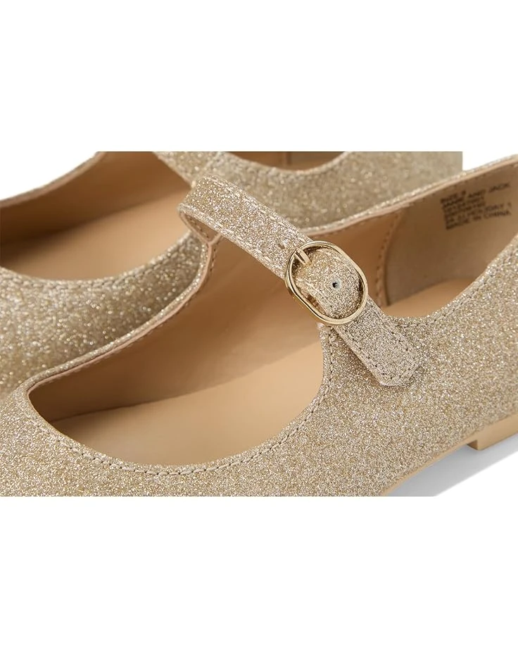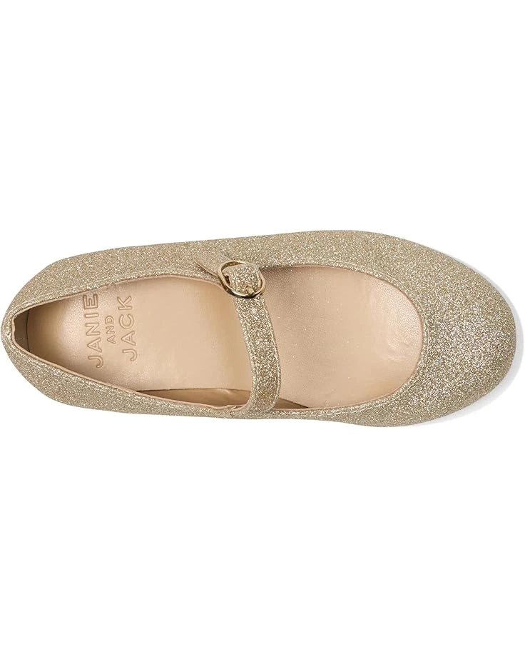 - Let your kiddo enjoy walking in shimmering delight wearing the Janie and Jack® Glitter Bow Flat. The footwear features polyurethane upper with round toe shape and adjustable buckle strap for a comfy fit.