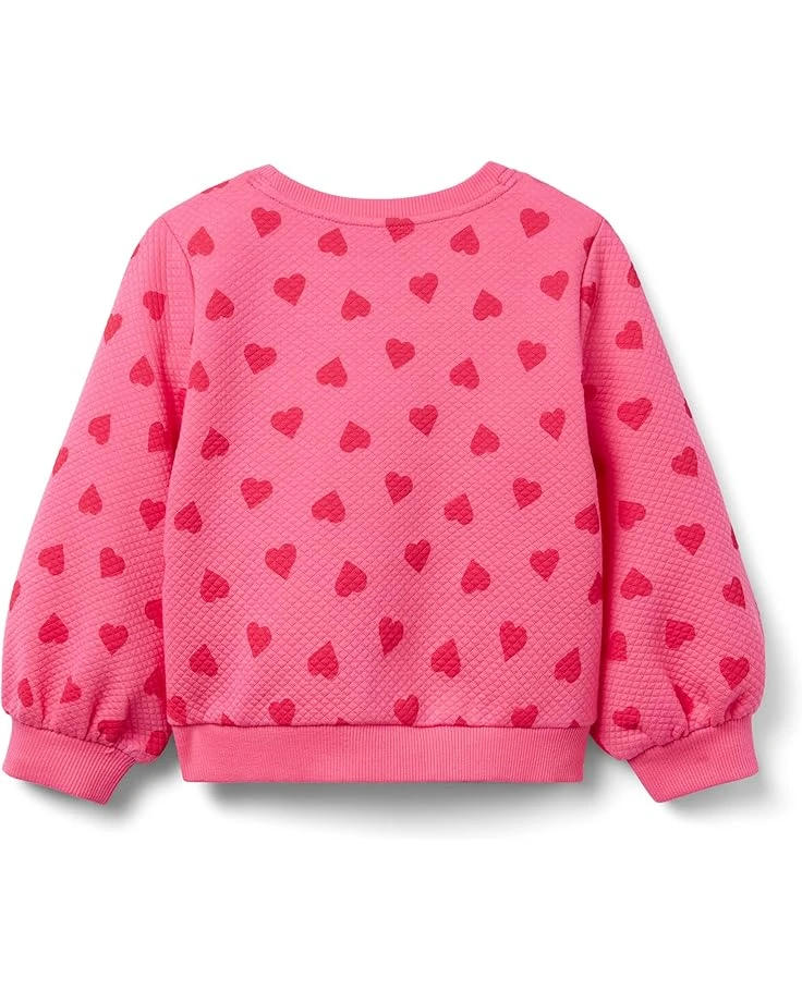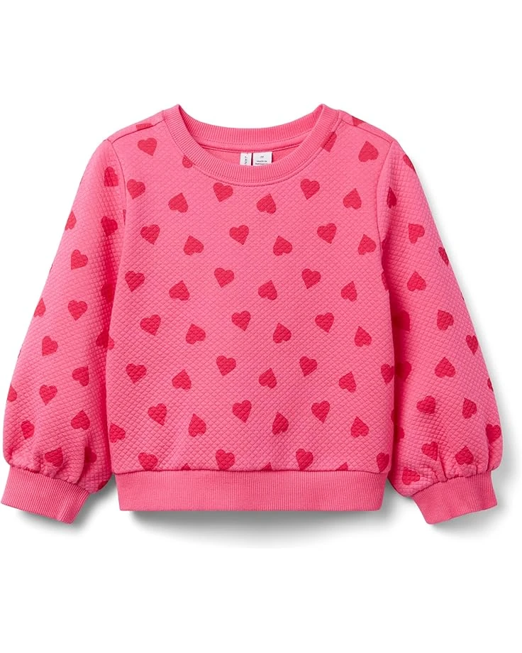 - She’ll love the sweet and cozy layer of warmth with the Janie and Jack® Heart Embossed Pullover. Featuring a ribbed crew neckline, long sleeves with ribbed cuffs, allover print, and a straight, ribbed hemline.
