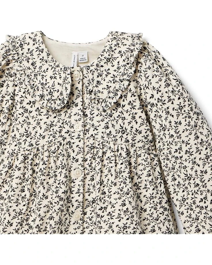 - Show off your cute and casual style as you dress up in the Janie and Jack® Ivory Floral Dress. The dress features a collared neck, full button-front closure, long sleeves with smocked cuffs, allover floral printed details, and an above-the-knee silhouette.