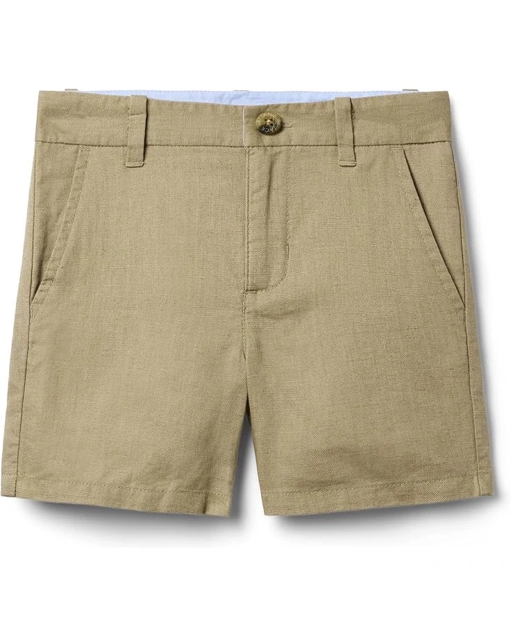 - Dress your little one in sleek style by opting for the Janie and Jack® Linen Flat Front Shorts. Features include a mid-rise waist with belt loops for a perfect fit. The zip-fly and buttoned closure add practicality, while the two front slash pockets offer handy storage.