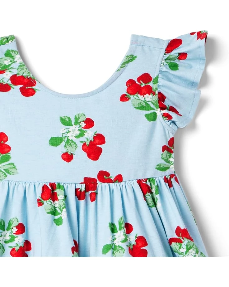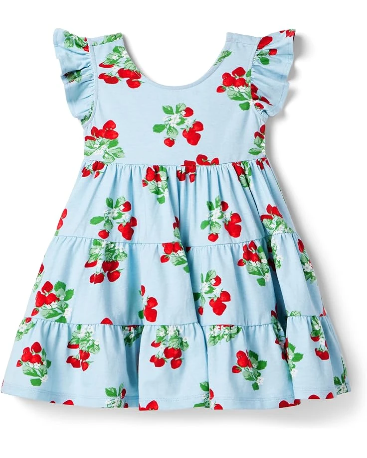 - Exhibit your little one’s quirky look donning the Janie and Jack® Strawberry Dress. The tiered dress features round neckline, allover iconic floral print work, and sleeveless construction with ruffled detailing.