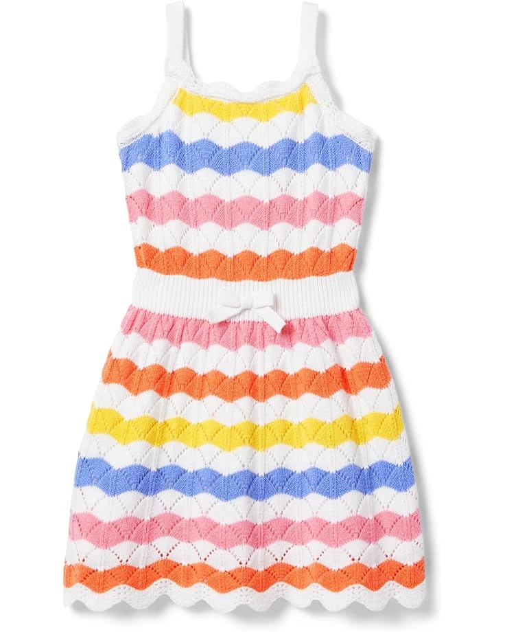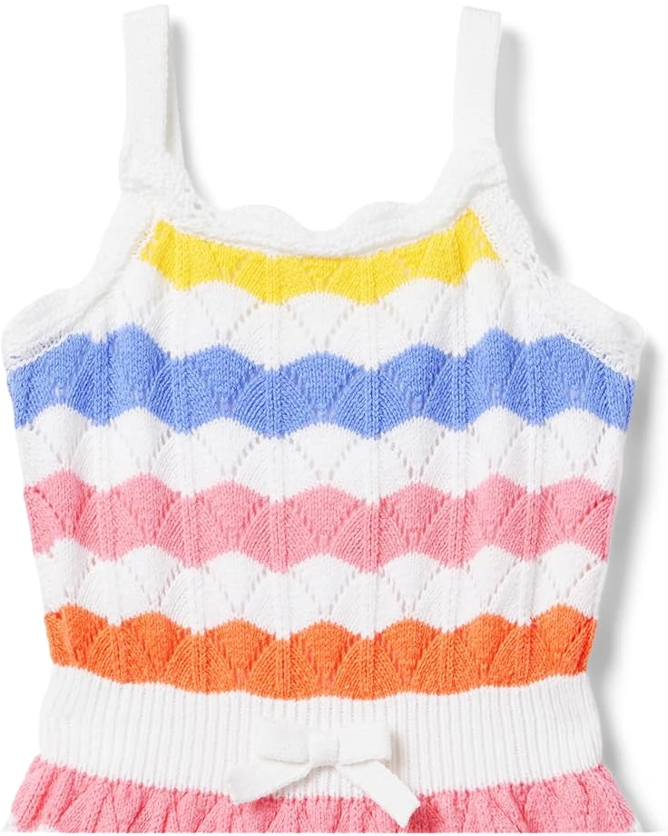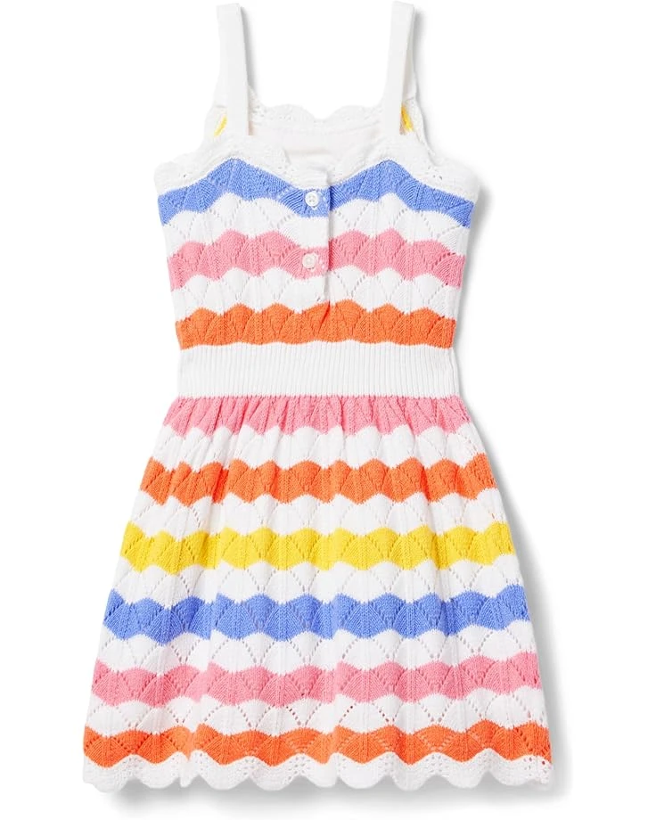 - Dress your little princess in the Janie and Jack® Stripe Sweater Dress. Crafted with a sweetheart neckline and sleeveless design, it exudes elegance. The half-button placket and elasticized waist offer convenience and comfort. Its wavy hemline and neckline add a playful twist. Effortlessly chic, it’s a pull-on style for hassle-free dressing.