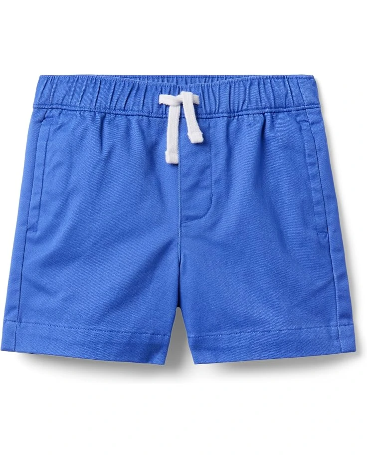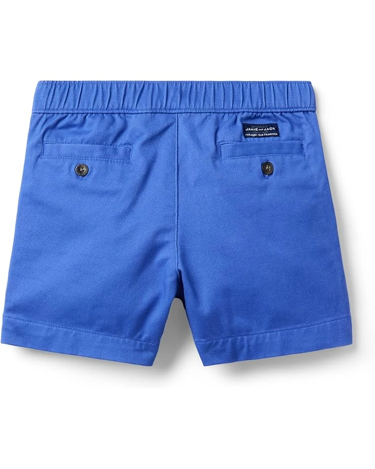 - Get your child ready for warm weather choosing the Janie and Jack® Twill Pull On Shorts. These shorts boast a mid-rise waist and a straight-leg silhouette for a timeless appeal. The elasticized waistband with drawstring allows for easy adjustments and a personalized fit. Complete with two hand pockets and two button-through back pockets, these shorts are practical and versatile for everyday wear.